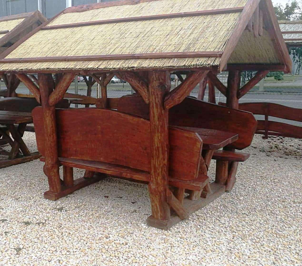 Vastagabb anyagból készül, szélesebb háttámlával ez a kiülő. (tető: nád, asztal és padok hosszúsága 2m, tető 2,5m, alapterülete 2 m széles, 1,5 m hosszú, a tető szélessége 2,8 m). Fa termékeink tölgy, világos narancs, sötét narancs, mahagóni, dió, paliszander színben rendelhetőek. FELHÍVJUK FIGYELMÜKET, HOGY FA TERMÉKEINK TERMÉSZETES FÁBÓL KÉSZÜLNEK, ÍGY ELŐFORDULHATNAK RAJTUK TÖKÉLETLENSÉGEK. Nádtetős kiülőink zsindelytetővel is rendelhetők. Az ár miatt kérjük, érdeklődjön telefonon.
