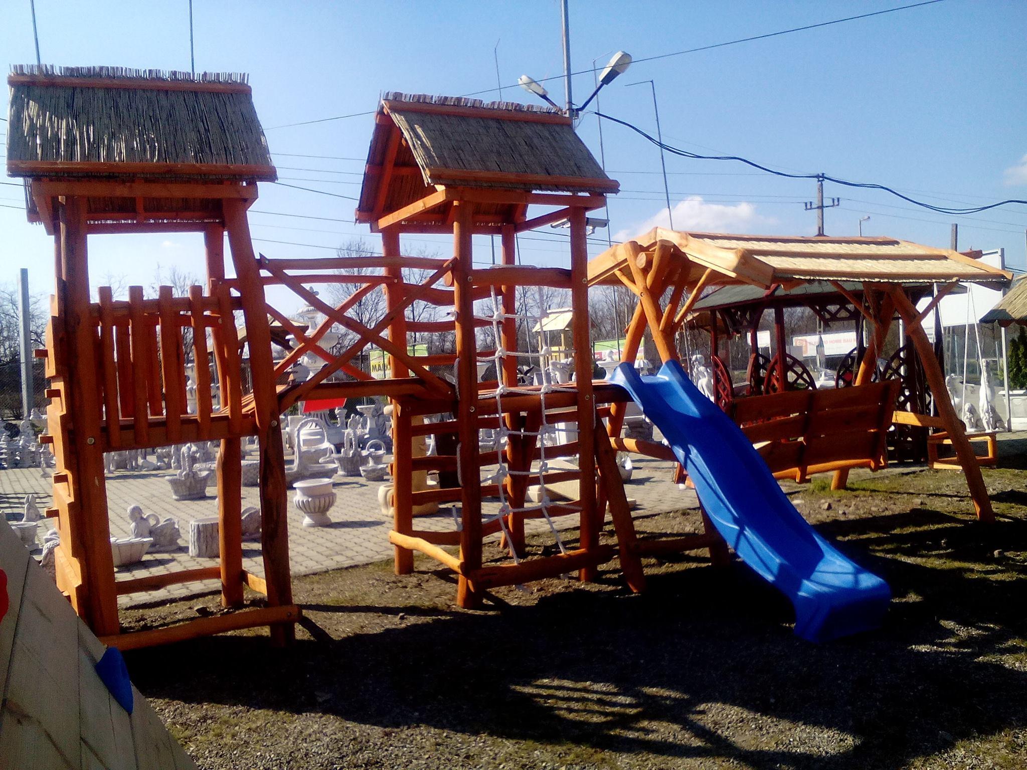 Alapterülete 8,7 m x 2,1 m, tartozék kis hullám csúszda. Az egyik torony oldalán mászófal fal mászó tappancsokkal, a másik torony oldalán mászóháló. A két tornyot híd köti össze. A csúszda és a létra oldala tetszőleges felcserélhető. A hintaágy ülőfelülete 1,60 m, háttámlája dönthető, fekvővé alakítható át. A hintaágy mellett egy gyerekhinta található még, mely lehet laphinta vagy pedig biztonsági hinta. Tölgy, világos narancs, sötét narancs, mahagóni, dió, paliszander színben rendelhető. FELHÍVJUK FIGYELMÜKET, HOGY FA TERMÉKEINK TERMÉSZETES FÁBÓL KÉSZÜLNEK, ÍGY ELŐFORDULHATNAK RAJTUK TÖKÉLETLENSÉGEK.