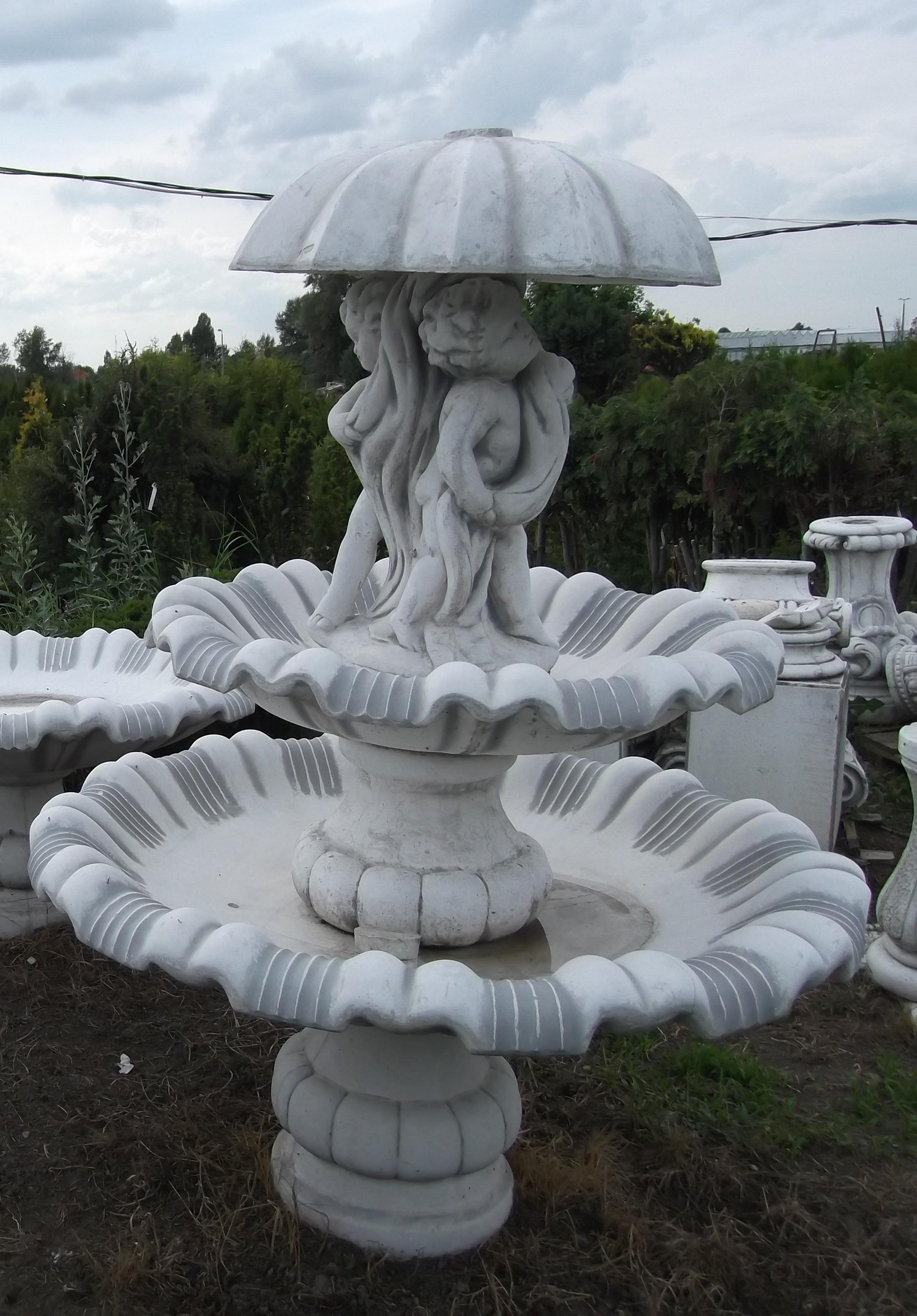 Esernyős fiúk kéttálcás szökőkút 314.000 Ft Cikkszám: 04-790-04 Szegedi raktáron: 0db Kedvencekhez ad Vissza: Szökőkút Leírás A szivattyú nem tartozék. Magasság 180 cm. Súly 540 kg. A láb átmérője 44 cm. Az alsó tányér átmérője 129 cm.