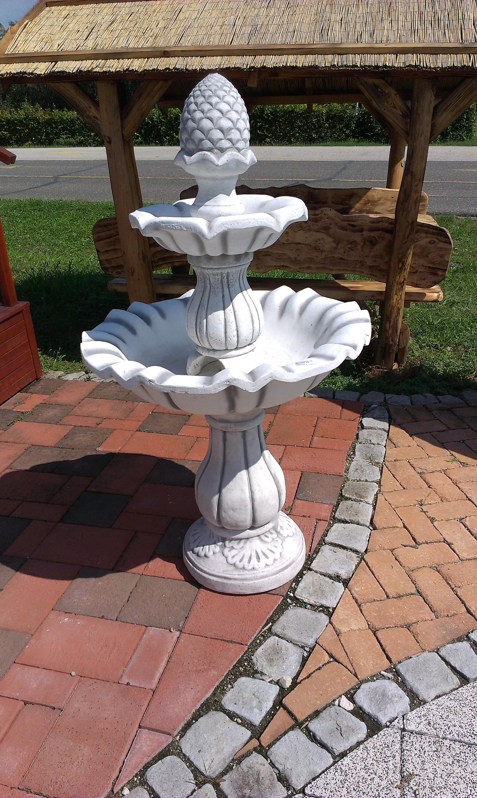 Kéttálcás tobozos szökőkút 149.700 Ft Cikkszám: 04-S107023-04 Szegedi raktáron: 3db Kedvencekhez ad Vissza: Szökőkút Leírás A szivattyú nem tartozék. Magasság 141 cm. Súly 152 kg. A láb átmérője 39 cm. A tányér átmérője 79 cm.