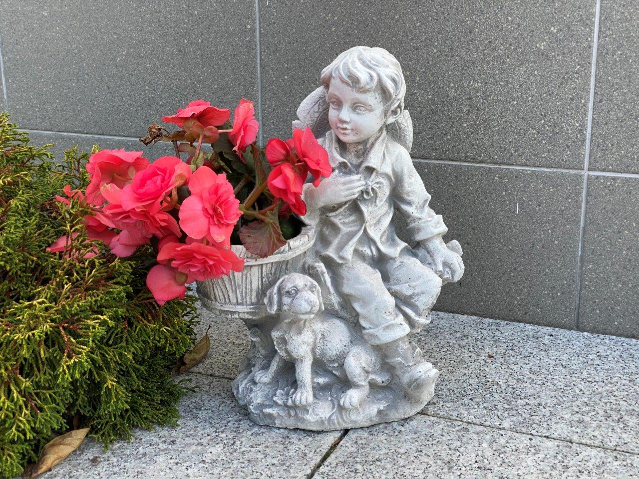 fiú kutyával kosárral virágtartó 35cm